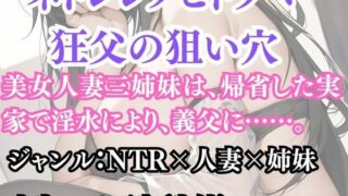 故郷という名の寝取りの館へようこそあらすじ静香編夏の盆休みの期間、養女の新山静香は義父の朝比奈拓馬から帰郷の誘いを受ける。義父の要望に応えて、静香は夫の新山智樹と一緒に実家へ行った。実家には静香のほかにも真琴、香織のふたりの養女がおり、三姉妹として義父と一緒に暮らしてきた。真琴や香織も夫婦でやってくる。一家団欒の時間に喜ぶ拓馬の姿に、静香は胸を撫で下ろす。急な連絡だったため、彼に異変があったのか不安になっていた。その夜、実家の寝室で智樹と布団を並べる静香。ふと、喉の渇きを覚えて、水差しの水を飲んだ。そのとき、人の気配に身構えていると、拓馬の姿があった。彼は普段と別人のように布団へ入ってくる。尋常でない義父に部屋から出て行くよう静香は促す。ところが、拓馬は立ち去ろうとせずに、朝比奈家で使用する湧き水の秘密を話しはじめた。義父は先立たれた美妻の面影を三姉妹に感じて、人妻になった頃合いに、濃密な逢瀬を交わすのが夢だったと告げてくる。震え慄く静香の浴衣寝間着をゆっくり解いて、義父は叢に眠る美裂へ顔を埋めてきた。暴力で突き放せない静香は、言葉を尽くして牡欲の暴走に歯止めをかけようとする。必死に抵抗する人妻に、拓馬は劣情を昂らせた。息つく暇をあたえず、その身体は……。真琴編実家に帰省して一週間が経過した。真琴は静香が病に臥せったと聞いて、義父に疑いの念を抱く。夫の和也は医者で、真琴の診察結果は大したことではないという。その話を聞いて、益々、看護婦の人妻は拓馬に不信感を持った。夜になり、浴室で湯浴みしようとする真琴。脱衣しているうちに、浴槽に先客がいると気づいた。相手は義父だった。久しぶりに背中を流して欲しいと拓馬は話しかけてくる。親子で湯に入ることは、この先ないかもしれない。義父のしんみりした口調で断れない雰囲気にされてしまい、真琴は承諾する。バスタオル姿で浴槽に入ると、拓馬は急な連絡をして済まなかったと素直に詫びる。率直に話をしているうちに、真琴は警戒心を少しずつ緩めていった。ところが、ふたりで浴槽から上がったとき、真琴の体は弛緩剤を打たれたように動かなくなる。そこまでが、義父の計画だった。人妻の背中を擦りながら、肉棒をタオル越しに押しつけていく。熟れた柔肉がひしゃげられて、真琴は相貌を赤く染めて、怒りをぶつける。拓馬は静香に話したことを、真琴にも話しはじめた。秘水に浸かった女体は蓄積した欲望が噴き出すと聞いて、不安と恐怖に動揺を隠せない。真琴は次第に妙な高揚感にへばりつかれて……。香織編静香、真琴と病に臥せてしまい、夫の勇治は実家から出ようと言いはじめる。義父に疑念を抱いていない香織は、夫の忠告に耳を貸さなかった。香織の帰郷は義父の暑中見舞いと古傷の治療を施術してもらうためだった。新体操の現役選手でもある香織は、義父に直接治療してもらう選択をとったのだった。診療所のベッドに横になる香織の体を拓馬は念入りに調べはじめる。人妻の想像に反して、彼はバストばかりに触れてきた。不快感に苛まれつつ、質問に答えて指圧を受けると、不意に眠気に襲われる。目を覚ますと、香織の体は一糸まとわぬ状態にされていた。羞恥の極みに怒気を発すると、義父は人妻から頼んできたことだと受け流す。呼吸を荒くする女肌に、彼は針を打ってきた。その前には、秘水入りのオイルを塗られて、マッサージで擦り込まれており、性感神経は……。舞 台乳母村 実家の寝室、浴室、診察室キーワード秘水朝比奈家の地下の水脈からくみ上げた飲料用の水で、催淫効果がある。真琴の性癖強気な性格のなかに、マゾヒストの一面を隠していた。香織のトラウマ所属する大学の総合運動部部長は、夫の父親で、過去に電車内で痴○に遭ったことから、逆に主要大会に推薦してもらうため、誘惑していた。それでも、車内のトラウマを消せずに悩んでいる。登 場 人 物新 山 静 香朝比奈家の次女で、三姉妹のなかでは一番おっとりした性格。商社の総務部に勤務しており、営業部の夫と社内恋愛で結婚。お嬢様の気風ながら、バランスがとれたスリーサイズで、隠れ巨乳。二十七歳。寺 井 真 琴朝比奈家の長女で、三姉妹のなかでは一番勘が鋭い。看護婦の婦長になっており、医師の夫と結婚。締まりと豊満さが融合した完熟の体が自慢。三十四歳。井 上 香 織朝比奈家の三女で、三姉妹のなかでは一番気が強く負けず嫌い。体育大学の新体操選手。ずば抜けた柔軟性とプロポーションを持っている。二十三歳。朝比奈拓馬代々医家として有名な朝比奈家の主。三姉妹に跡継ぎを産んでもらうべく、絶倫の情欲をありったけぶつけていく。四十五歳。【注意事項】※本作品の表紙は、生成系AIにより作成したイラストを使用しております。※本作品は完全なるフィクションであり、登場する人物・団体・事件・施設等はすべて架空のものです。実在の人物・団