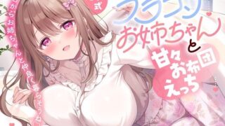 久しぶりに帰省したブラコンお姉ちゃんに愛されちゃう甘々エッチ作品です♪CV:浅木式様★作品内容★「久しぶり♪ お姉ちゃんだよー♪」両親が留守にする関係で、久しぶりに帰省した姉の羽衣。羽衣を女性として見ているあなたは、一緒に暮らすことになりドキドキしっぱなし。ある日、風邪で寝込んでいると、羽衣がお布団のなかに入ってきて……「風邪なんて羽衣お姉ちゃんに移して、すぐに治しちゃえ」ぎゅ〜っと抱きしめられて、すっかり理性の限界へ!「君のこと、弟としてだけじゃなくて、男の子として好きなの」姉から恋心を打ち明けられたあなたは、大好きなお姉ちゃんと甘々なエッチをおこなうのでした。★ヒロイン★【白峰 羽衣(しろみね うい)・・・浅木式】あなたのことが大好きな甘々なお姉ちゃん。社会人になってから、一人暮らしをしている。同居していたころは、あなたのことが大好きすぎて、一緒のお布団で寝ようとしていた。あなたと離ればなれになってから、あなたへの想いがより一層高まっている。★シーントラック★■1.お姉ちゃんが帰ってきたよ(2:36)久しぶりに帰省した姉の羽衣の姿にドキドキしっぱなしのあなた。実の姉を女性として意識していることに罪悪感を覚えたあなたは、羽衣にそっけない態度を取ってしまうのでした。「ただいまぁ。わぁ、久しぶりぃ。お姉ちゃんだよー」「あはは、なぁに。照れてるの?羽衣お姉ちゃんに抱きつかれて、照れちゃってるんだぁ?」「あん、もう逃げないでよぉ。お姉ちゃん傷ついちゃうよ?せっかくお姉ちゃん、久しぶりに実家に帰ってきたのに」「んもう、何それぇ? 反抗期?それとも、すっごい久しぶりに会うから、私のこと、女性として意識しちゃった?」(ハグ)■2.お姉ちゃんがずっとそばにいるからね(3:33)風邪を引いてしまったあなた。羽衣に冷たい態度を取ってしまったことを謝るのでした。「お熱計った?どれどれ……。あちゃあ、結構あるね。がっつり風邪だぁ」「苦しくない? お姉ちゃんにして欲しいことある?おかゆ、あーんしてあげよっか?」「私も謝んないとだ。恥ずかしいって気持ち、考えなくてごめんねぇ。私、昔の君とおんなじ感じで接しちゃってたよ。べたべたされるの嫌だった?」「君はいつまでも私の可愛い弟なんだし。前みたいにお姉ちゃんと仲良くしてくれたら嬉しいな」■3.お姉ちゃんが手コキしてあげる(21:53)風邪で寝込んでいるあなた。羽衣がお布団のなかに入ってきて……「寒い?大変っ。今お姉ちゃんがあっためてあげるからねっ」「ほら、お姉ちゃんの体、ぽかぽかしてあったかいでしょ。君の体の震えも少し収まってるみたいだよ。風邪なんて羽衣お姉ちゃんにうつして、すぐに治しちゃえ。ぎゅー……」「これって、おちんちん?えっと……勃起してるの?お姉ちゃんで興奮してくれたってこと?」「気持ちいいね、気持ちいいねぇ。おちんちんの頭のところ、きゅっきゅって撫でるのも気持ちいいんだ。きゅっ、きゅっ、きゅ〜……」(手コキ/耳ふー/耳舐め/キス/射精)■4.お姉ちゃんがパイズリしてあげる(14:35)手コキされて、羽衣のことを前よりもっと女性として意識してしまったあなた。顔を見るだけで勃起してしまい、羽衣にパイズリしてもらうのでした。「ほらほら、見て見てぇ、おっきいでしょぉ。お姉ちゃんの密かな自慢なんだよ。Fカップなんだぁ。やぁん、すっごい見てるぅ。んんぅ、こんな気持ちなんだぁ」「えっとね、パイズリってやつをしようとしてるのぉ。えいっ、えいーっ。んっ、ふぅっ……おちんちんがお乳に擦れちゃうぅっ」「おっぱいをうまいこと両手で挟んでぇ。右と左を交互に動かしてぇ……。んっしょっ……んっしょ。ぐにぐに……ぐにぐに……」「くっちゅっ、くっちゅっ、れろれろっ、くっちゅっ、じゅっちゅっ。ふぅ……君のおちんちん、どんどんエッチになっちゃう。私の涎と君のお汁でぬるぬるでぇ、見た目もエッチぃ」(パイズリ/フェラチオ/乳内射精)■5.お姉ちゃんと初めてのセックスしよ(24:25)姉弟なのにエッチなことをするのはおかしいと思いながらも、抑えられないふたり。実姉の羽衣と初めて同士の近親相姦エッチをおこなうのでした。「あはは、そっかぁ。両想いだったんだ……。昨日初めて意識したの?そっかぁ、私の行動も無駄じゃなかったんだね、ふふ。すごく嬉しい」「ゅっ、ちゅっぷっ、くちゅっ、ちゅぷっ、くぷっ、ちゅぷっ。はぁ……。すごいね。大人のチューって。脳が蕩けそうなくらい……エッチな気分になる」「あのね、私、初めてなんだ。セックスするの。嘘じゃないってぇ。だからね、ちょっと怖かったんだ。お姉ちゃんだから怖いなんて言い出せなくて……でも、君から勇気貰っちゃった」「はぁっ、はぁっ、あっ、あっ、あっ、気持ち、いいっ。君のおちんちんが中で擦れるとっ、んっ、くぅっ、気持ち良くっ、なっちゃってる。私ぃっ、君に気持ちいい所、開発されちゃったぁ」(キス/胸揉み/手マン/騎乗位/破瓜/中