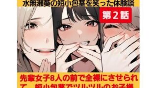 M男向けCFNMボイス おちんちん見〜ちゃった〜! 水無瀬葵の短小包茎を笑った体験談 第2話 先輩女子8人の前で全裸にさせられて、短小包茎でツルツルのお子様チンポを嘲笑され…