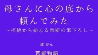 「母さん、俺とエッチしてくれない?」 崖っぷち童貞息子の無謀すぎる願い。当然、母は激怒し拒絶する。しかし、必死すぎる懇願と「誰にも言わない」という約束に、母の母性本能と理性の壁が揺らぎ始めた……。「手だけなら」「口だけなら」――譲歩を重ねるごとに、エスカレートしていく息子の要求。そしてついに一線を越えた時、母は知らなかった悦びに溺れ、息子に乱されていく。背徳と興奮が止まらない、禁断の母子相姦劇!総字数 約33,500字(読了時間 約1時間7分)〈本文より抜粋〉いつもの小遣いの催促だと誤解した母さんは、警戒を解いたように少し微笑んだ。しかし、俺の願いはそんな些細なことではない。俺は大きく息を吸い込み、固く握りしめた拳に力を込め、そして、その驚くべき告白を母さんへとぶつけた。 「母さん、俺とエッチしてくれない?」 勢い込んで伝えた言葉は、母さんの頭に疑問符を生み出しただけのようだった。 「はあ? なに、エッチって?」 「だから……セックス」〇俺は震える声で、最後の勇気を振り絞った。 「あのさ、母さん……フェラしてくれないかな」 その言葉が口から出た瞬間、母さんの顔から血の気が引いたのが分かった。そして、次の瞬間、母さんの瞳は、まるで鬼のようなキツい目に変わった。 「はあっ!?」 その声には、驚きと怒り、そして呆れが入り混じっていた。手コキでさえ譲歩してやっているのに、さらに上の要求をしてくるとは何事だ、という母さんの心の声が聞こえてくるようだった。〇俺はベッドに這い上がると、母さんが開いてくれた脚の間にゆっくりと割り込む。目の前には、さっきから俺の目を奪って離さない、艶めかしい光景がさらに大きく広がっていた。 自分の下腹部で、とっくに限界まで膨れ上がった熱い塊が暴れている。俺はそれを手で掴むと、ためらうことなく、母さんの湿った秘所へと向けた。その先端が、柔らかな割れ目にぴたりとあてがわれる。びくん、と母さんの身体が大きく震え、甘い声が漏れた。もう、引き返せなかった。 d_705023