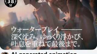 作品タイトル【38分HD】ウォータープレイ ―― 深く沈み、ゆっくり浮かび、吐息を重ねて最後まで。[ai-gen.0115+0120+0121|3本立て]■ 概要・ 水面が上がり、上は光、下は水中。水中カメラが下半身をとらえ、水面は‘天然のベール’。顔は映さず、身体の動きが際立つ。 上昇する水線が身体をなぞり、クレッシェンドの先で全身が水中、余韻だけが残る官能の世界。・ Wan2.2のリアルモーションで、水の表現、胸の揺れ・腰の追従・表情まで‘生身級’。・ ローからグッと寄せる新カメラワークも導入で、距離ゼロの没入感。■ チャプタータイムテーブル 1ai-gen.0115 (0:00〜) :とある地中海の港町&日系女の子。 2ai-gen.0120 (16:50〜) :都会の喧騒&ロシア系クール女子。 3ai-gen.0121 (23:19〜) :緑の生い茂る廃墟&日系お姉さん系■ 作品情報・ 長さ:38分39秒・ 解像度:1280×960(HD)・ 容量:1.61GB・ 形式:QuickTime(.MOV)/H.264・ CV・効果音:音声素材_Pincree(此花瑠璃さま)/BGMなし■ ストーリー水しぶきが拍を刻み、ふたりの息がそろう。彼の手が導線になって、彼女は波みたいに応える。深く沈み、ゆっくり浮かび、また沈む――視界は水と光だけ。 世界はミュート。残るのは、熱とリズムと「最後まで」。■ ご購入前に・ 本作はAI生成ビジュアルを用いたフィクションです。実在の人物・団体・作品とは一切関係ありません。・ 登場人物はすべて18歳以上を想定しており、違法・犯罪行為を助長する意図はありません。・ 販売サイトのガイドラインに準拠し、必要な箇所には適切なモザイク処理を施しています。・ AI生成の特性上、不整合が含まれる場合があります。あらかじめご了承ください。■最後に露出ではなく余白で官能を上げる38分。水面という‘天然のベール’が、見えると想像を往復させます。ノイズを切って、吐息と水音だけでどうぞ。 ゆっくり沈み、ゆっくり浮かぶ――その‘間’がすべて。 是非ご体験を! d_678841